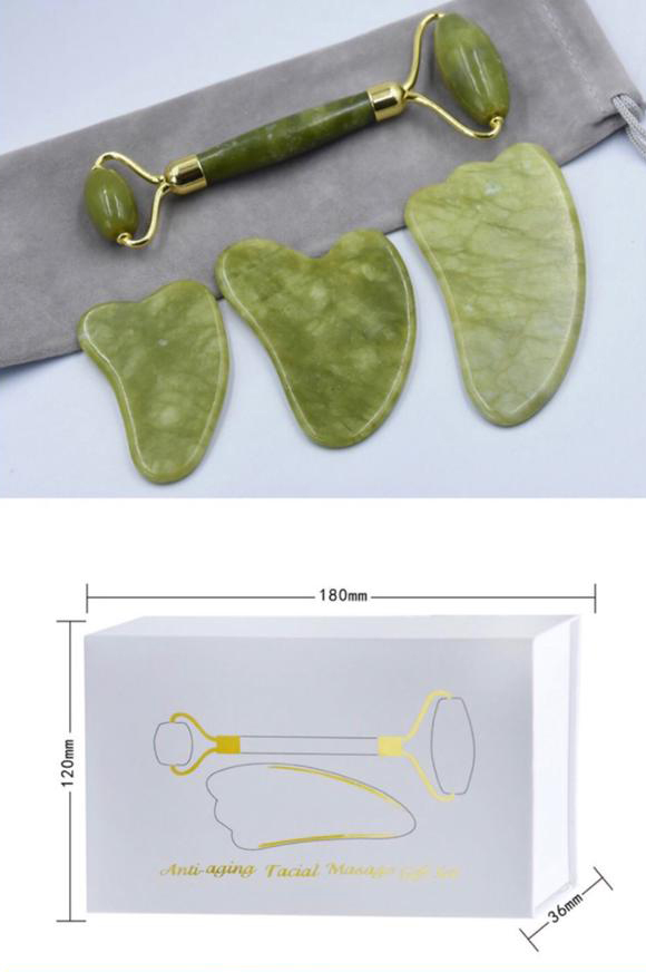 Набор 2 в 1 Роллер-массажер для лица Скребок Гуаша из нефрита в сувенирной упаковке для массажа в домашних условиях — цена, описание, характеристики и фото. Стоимостью 68 рублей товар можно купить в интернет-магазине «Просто Полезно». |